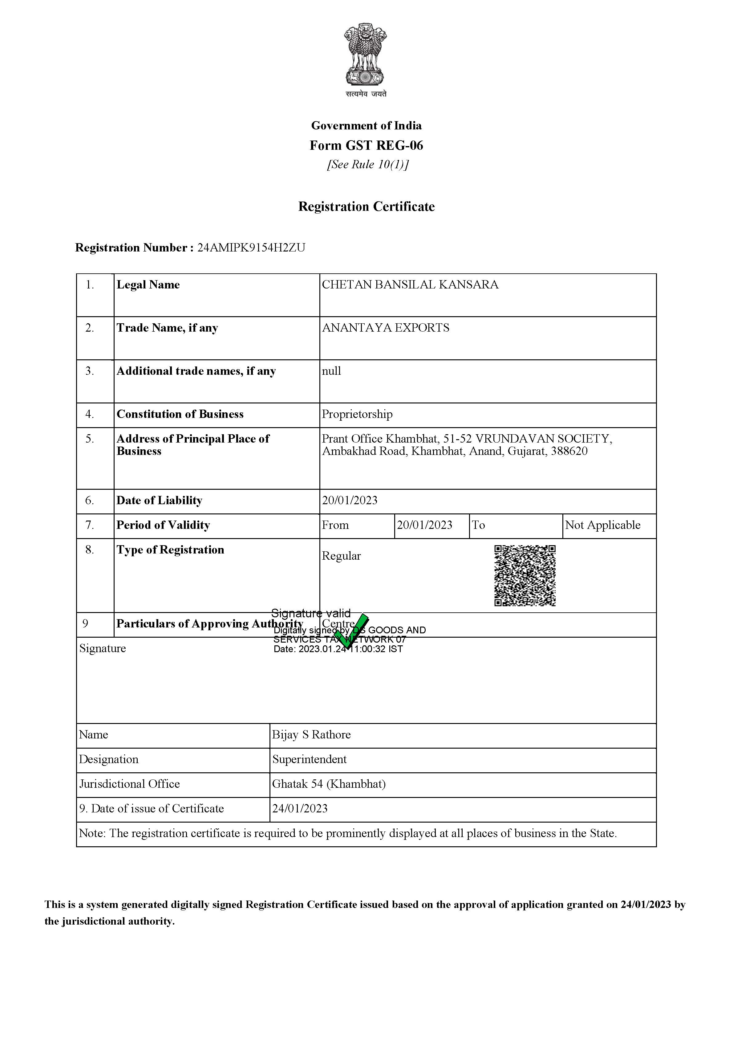 1st Floor, AL-Aqmar Complex, Khambhat. Dist.Anand(Gujarat) INDIA.