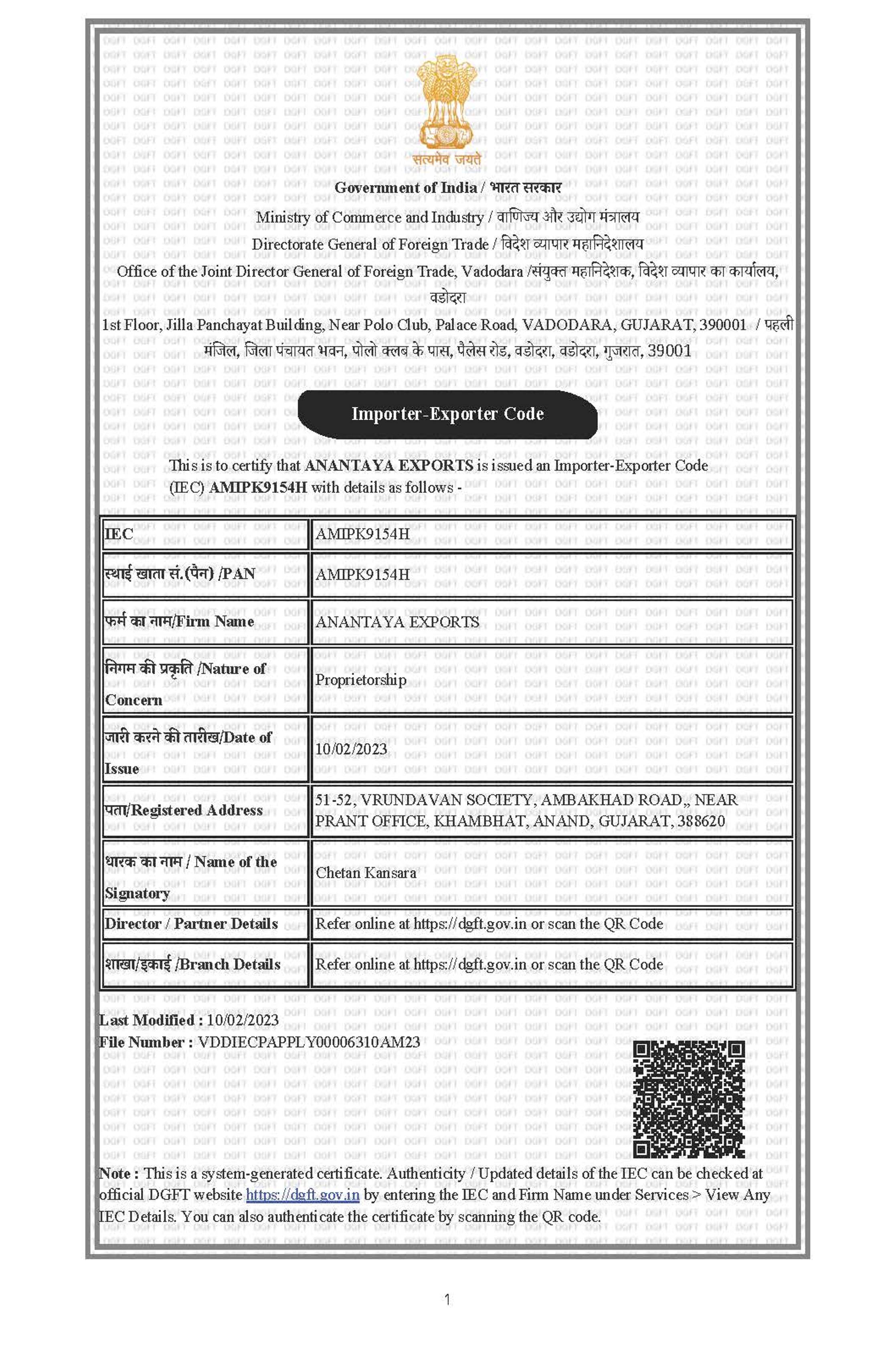 ANANTAYA EXPORTS primarily focuses on the transparency with its customers around the world. We strongly believe that the clients are the only assets to our operations, without which our existence would not be valued in this world. With this perception, we have successfully built a large client base and we look forward to expand it.